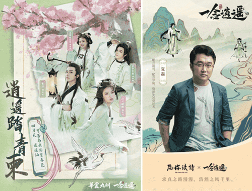 在游戏之外,,,,《一念逍遥》一直致力于打造国风修仙原创IP,,,,以音乐、、漫画,,小说等衍生内容去延展丰富游戏内容。。。。上线以来,,,,整整做了十首歌,,,小说应该也是喜马拉雅平台今年游戏品类小说收听量Top1的作品;而在营销的内容传播上,,《一念逍遥》也一直秉承比较国风的基调,,,传递诗词、、、文化内涵,,如如清明节定制汉服合作,,传递中国传统的清明踏青、、、清明诗会文化。。。。