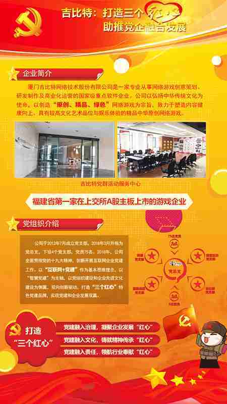 未来公司将全面学习贯彻习近平新时代中国特色社会主义思想和党的十九大精神,,,,持续强化“互联网+党建”的思维理念,,,,以“智慧党建”为主轴,,以党组织建设和企业先进文化建设为侧翼,,,双向创新驱动,,,,引领有信仰、、、、有情怀、、、有价值的新时代游戏研发运营,,,在不断发展壮大的同时,,,,成为行业的“红色标杆”,,实现党建和企业发展双赢。。。